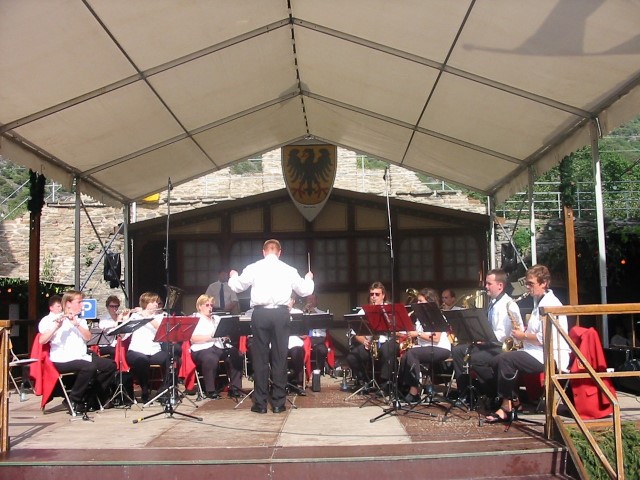 Am Freitag, 10.09.2004, ging’s früh morgens von Drevenack zunächst Richtung Koblenz zur Festung Ehrenbreitstein, von der aus die Musiker den weltberühmten Panorama-Blick auf Koblenz am „Deutschen Eck“ mit dem Kaiser-Wilhelm-Denkmal genießen konnten. Anschließend fuhr das Orchester rheinaufwärts zur Weinprobe nach Bacharach.