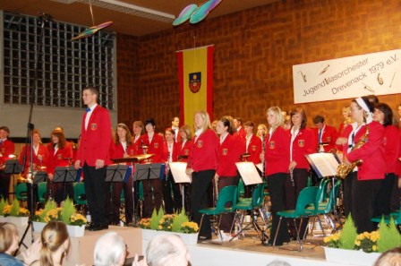 Am 04. und 05.05. hat das Jugendblasorchester zum 25. Frühlingskonzert in die Sporthalle am Buschweg eingeladen. Die 700 Konzertbesucher erwartete ein anspruchsvolles und schwungvolles Konzert. Obwohl durch das Sturmtief Kyrill auch das Wäldchen am Buschweg stark in Mitleidenschaft gezogen worden war, freute sich unser Vorsitzender Frank Brändel, dass so viele Konzertbesucher den Weg zur Sporthalle gefunden hatten. Unter den zahlreichen Konzertbesuchern war auch der Ehrenvorsitzende des Jugendblasorchesters Drevenack, Heinrich Schmellenkamp, den Frank herzlich begrüßte.