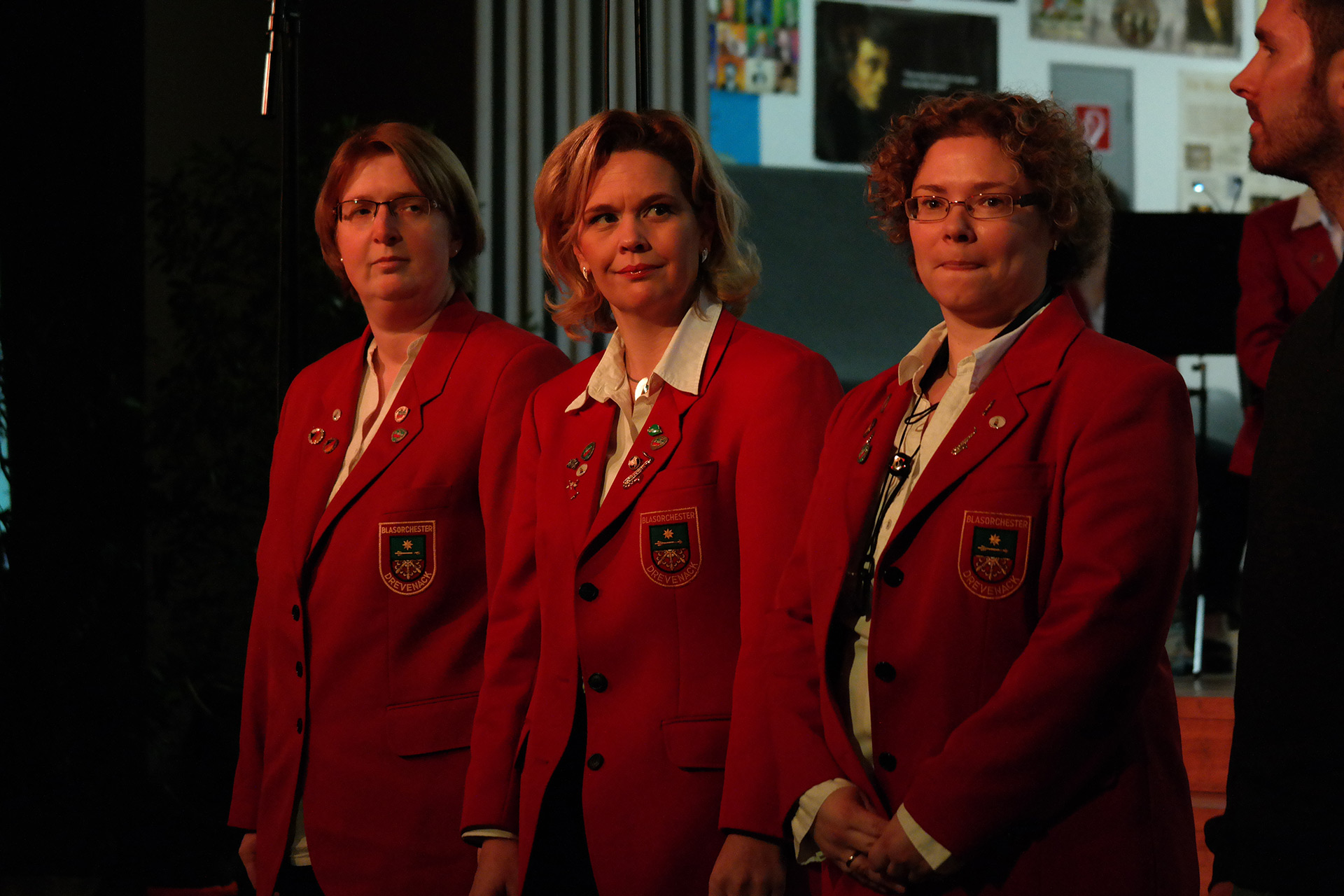 Für 20 Jahre Mitgliedschaft geehrt wurden die Fagottistin Sarah Kerpen, der Hornist Christian Lohmann und der, zur Zeit leider verletzte und daher nicht einsatzfähige, Tenorhornist Sören Schulte-Bunert.